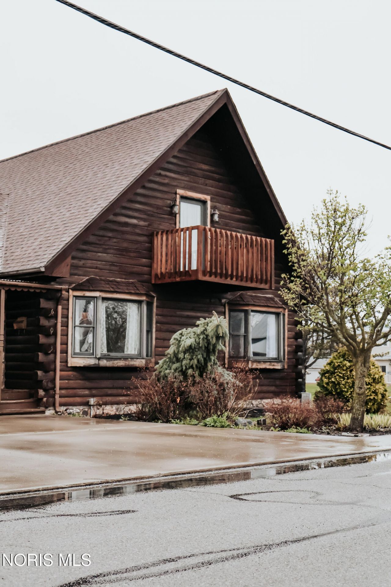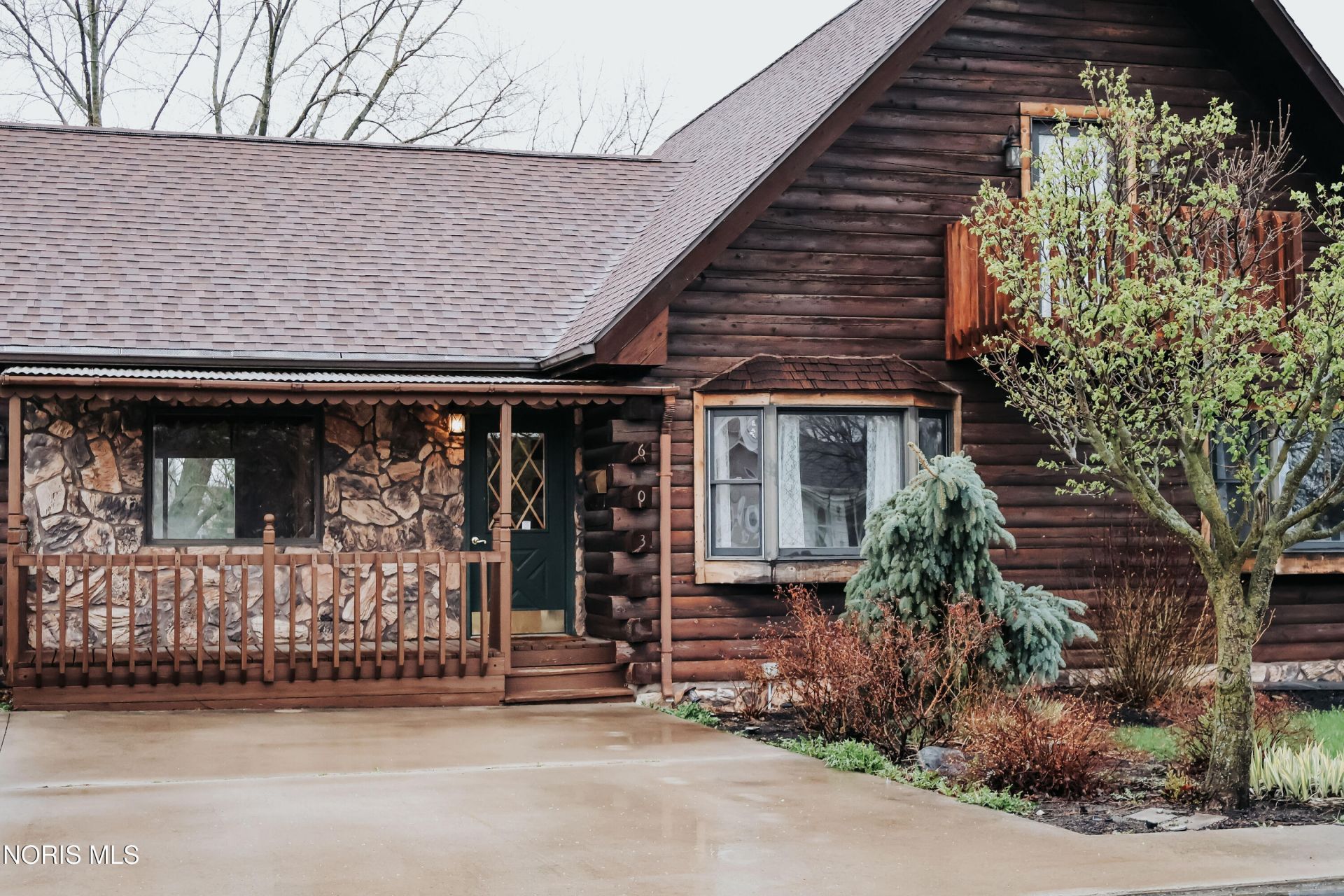 Tucked away in Columbus Grove, this 3 bedroom, 2 full bath log cabin is full of warmth, character, and charm. With 2,176 square feet plus a partially finished basement, this home offers the kind of space and personality that is hard to find. Inside, you will find a stunning floor-to-ceiling stone fireplace in the living room, stretching up to the cathedral ceiling and creating a true focal point of the home. The kitchen features custom wood cabinetry and a two-tiered counter with extra seating space, perfect for everyday living or gathering with guests. The layout includes two bedrooms on the main level and a upstairs primary with its own balcony. The partially finished basement adds even more usable space with a bar area, built-in cabinets, additional living space, and two separate storage rooms. Outside, enjoy the covered front porch, a large back deck with both covered and open areas, plus a pergola for even more outdoor enjoyment. A 16k Generac whole-home generator adds peace of mind and convenience.